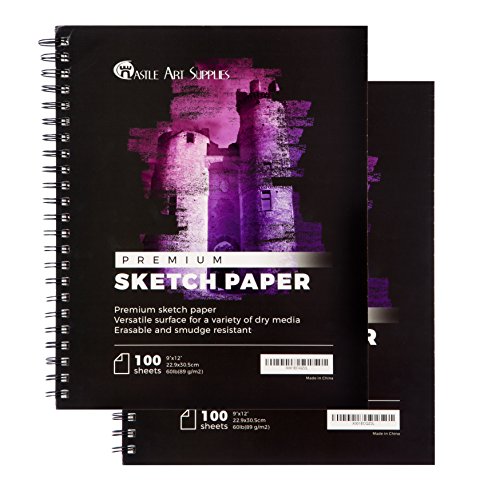 Castle Art Supplies Artists Sketch Books (2 Sketch Pad Pack) 9 x 12, 200 Sheets of Sketch Paper Ideal for Drawing and School Supplies - Acid Free and Excellent Value