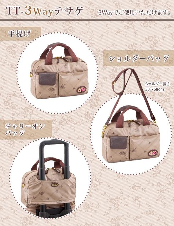 用途に応じて手提げ・ショルダーバッグ・キャリーオンバッグになる3Wayバッグ。ちょっとしたお出かけや旅行等に最適です。 |
