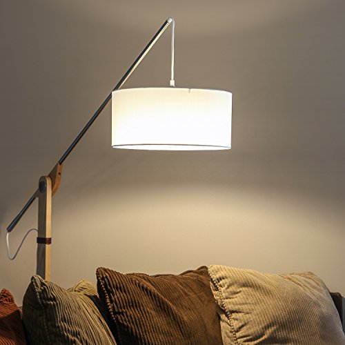 - RISE AND SHINE - The Brightech Eithan LED Floor Lamp brings a lighthearted atmosphere with a bright smile to any room in your house, apartment, office, church, school, or cabin. Featuring a natural blonde ash body whittled from real wood to compliment the white metal base and matching fabric shade, Eithan brings a cozy element to any interior decorating style. Perfect for urban, contemporary, minimalistic, traditional, or even rustic themes, Eithan was born ready to shine!