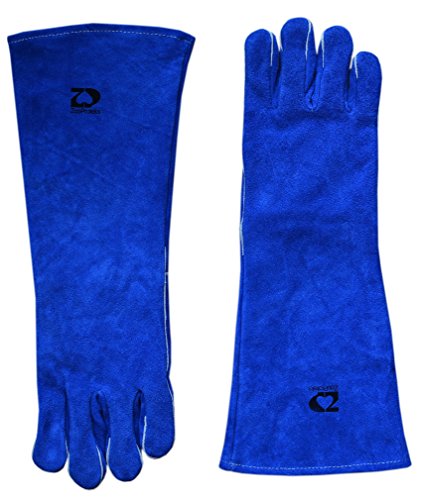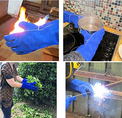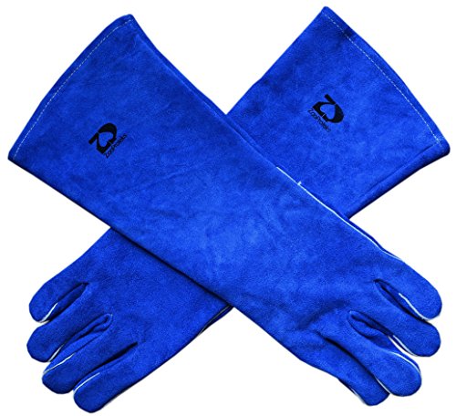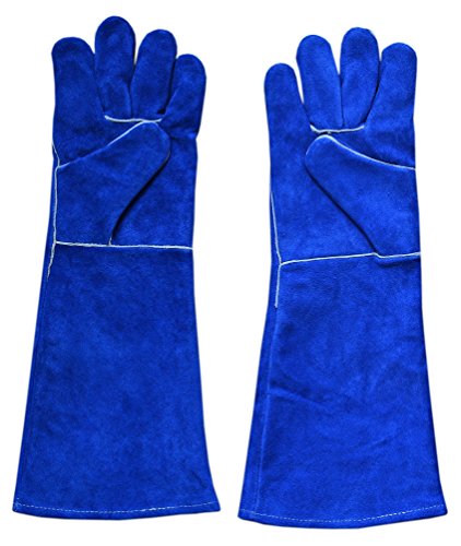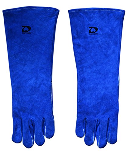 ZaoProteks ZP1801 Extra Long Sleeve Heat Resistant Cowhide Leather Welding Gloves,Work Gloves, Large -For Welding /Gardening /Camping /Fireplace /Barbecue and so on (Blue with Extra Long Sleeve)