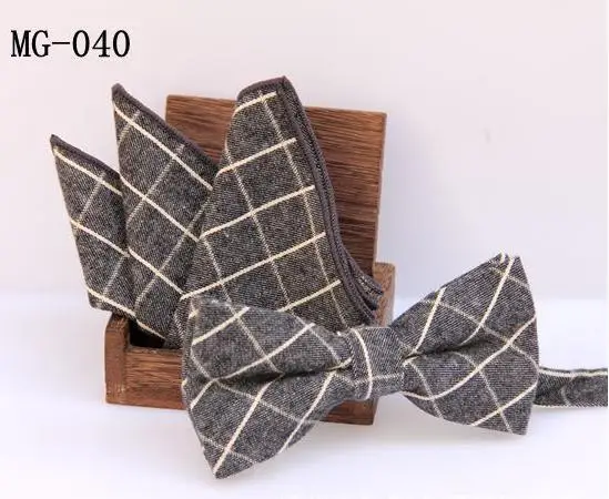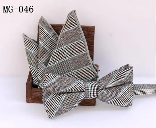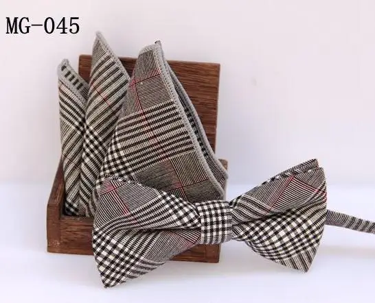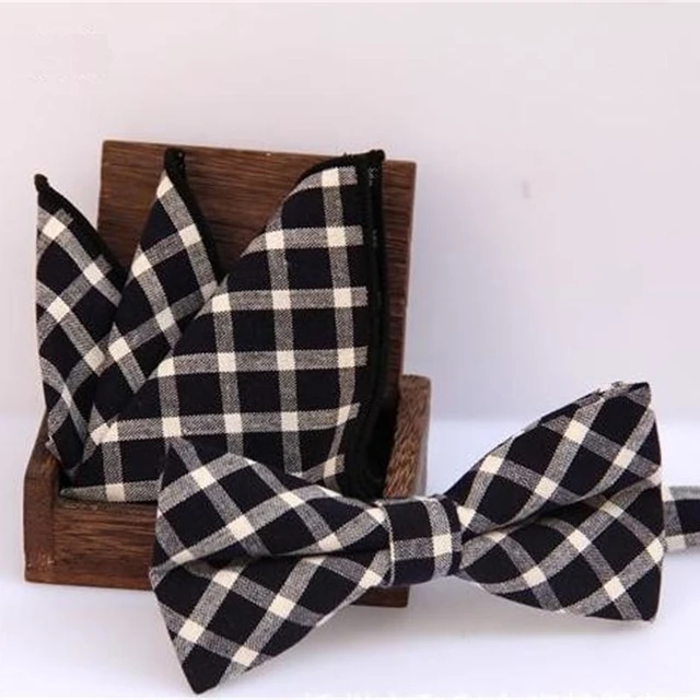 | [해외]체크 bowknot 세트 클래식 코튼 자카드 직물 남성 나비 자기 나비 넥타이 나비 넥타이 포켓 스퀘어 손수건 정장 세트 |