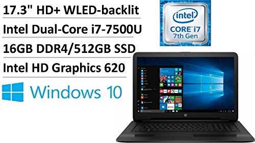 -. Title : 2017 Flagship HP High performance 17.3" HD+ WLED-backlit Laptop, Intel Dual-Core i7-7500U up to 3.50GHz, 16GB DDR4, 512GB SSD, DVD Burner, WiFi, Webcam, HDMI, Intel HD Graphics 620, DTS Sound, Win 10