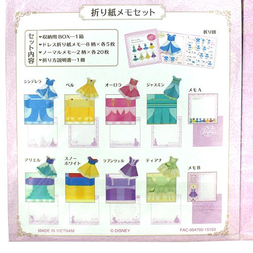 [Tokyo Disney Resort Limited] origami memo set Disney Princess dress is broken. The set includes ■ ■ storage BOX1 boxes each five × pattern dress origami note 8 each 20 sheets × normal Note 2 pattern folding manual book ■ size ■ side about 12 × vertical approximately 12cm (note)