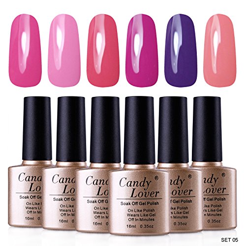 Candy Lover Gel Polish Kits UV/LED Soak Off Nail Lacquers, Perfect Match Pinky Series (6 bottles,10ml Each) Set #05