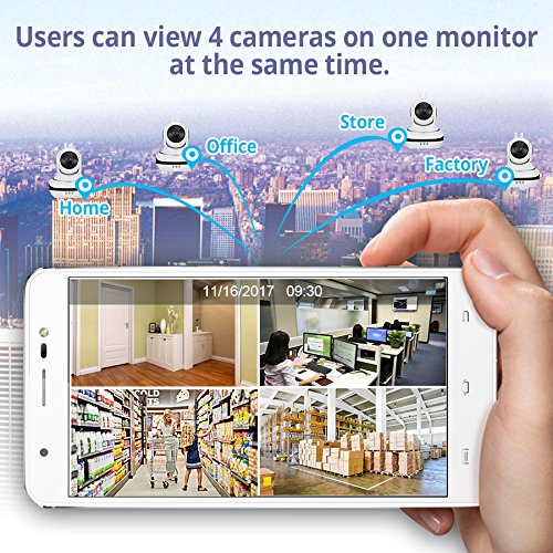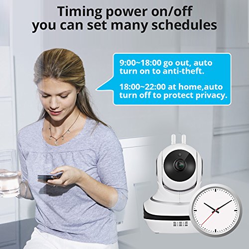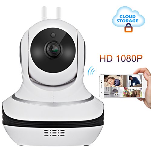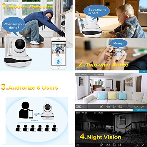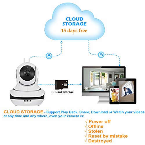 -. Feature : Supports Cloud Storage to avoid the risk of losing footage from an SD card, ensure all your videos are safe, secure and protected. Supports up to 64GB micro SD cards. / Captures 1080P high-definition images, 355° horizontal & 120° vertical rotation range and create a complete 360° coverage smart home system. Remotely control camera pan tilt zoom to view any angle you want. / Support infrared night vision - IRCUT double filter, automatic switch between day and night, 4 pieces IR LEDs around the lens, a night visual range up to 49 feet, make monitoring night like day. / Sound Detection and Motion Detection uses state-of-the-art technology to send alerts to your phone, send alarm images to the designated mailbox and camera itself's voice alert. / Easy to set-up: Seamlessly HD video streaming and two-way audio via your smartphone. Support 5 user online, can share up to 10 users simultaneously.