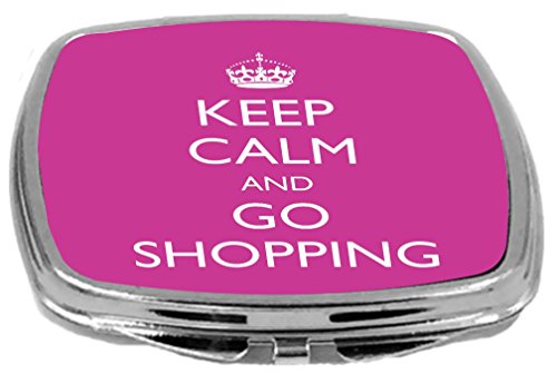 Rikki Knight Compact Mirror, Keep Calm and Go Shopping, Pink Rose