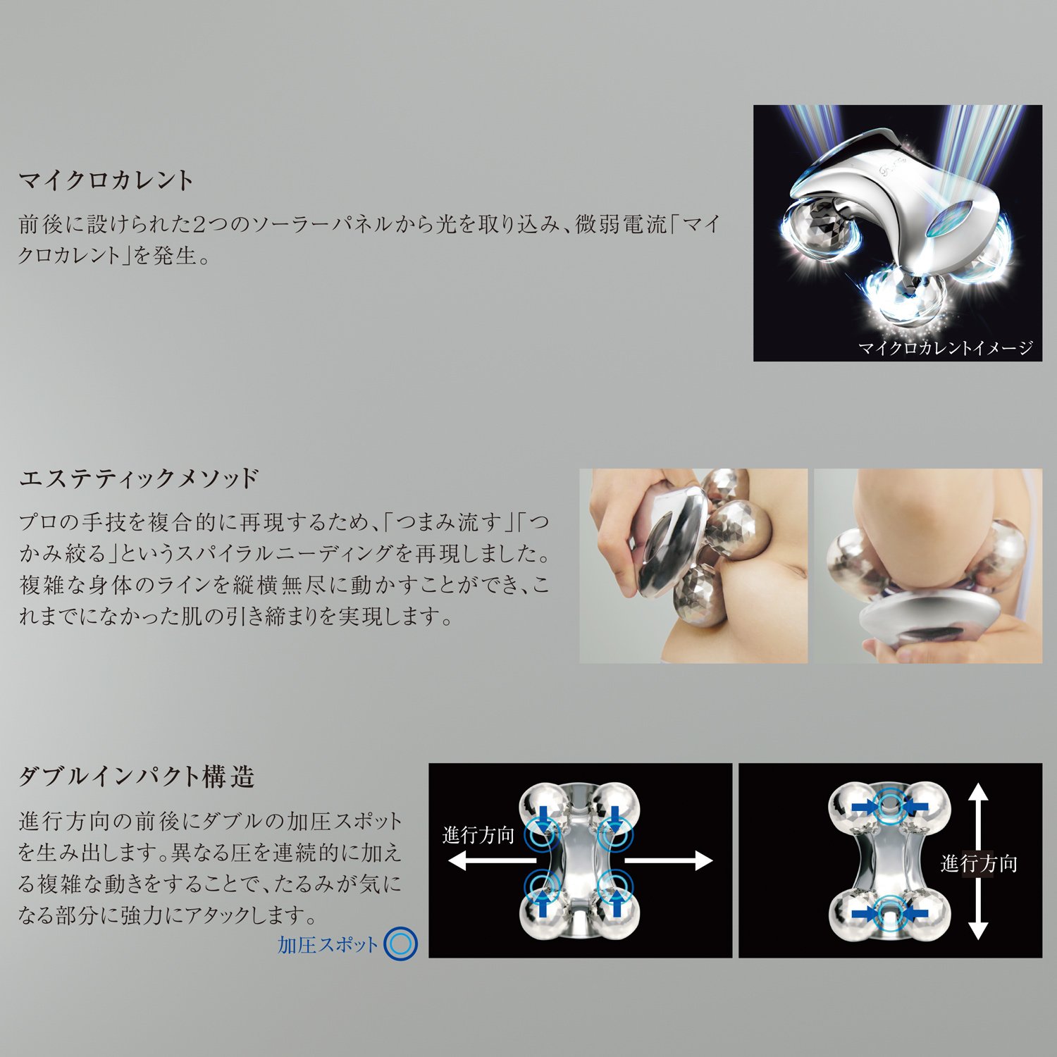 Light is taken from two solar panels installed at the front and back, and weak current "microcurrent" is generated.