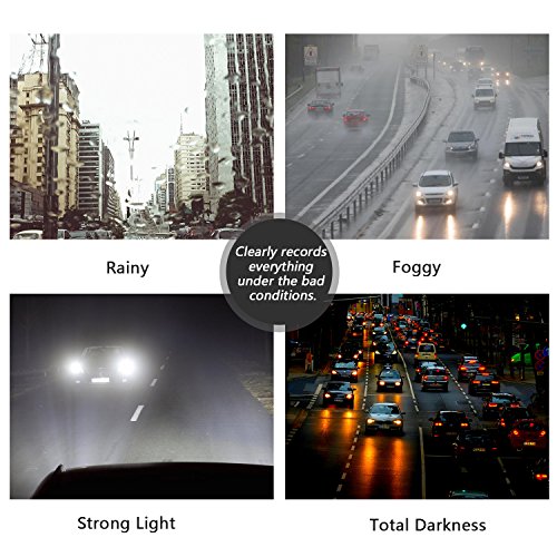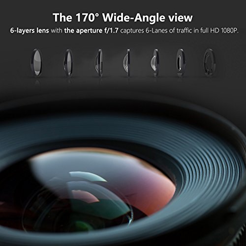 - The 170° Wide-Angle view 6-layers lens with the aperture f/1.7 captures 6-Lanes of traffic in full HD 1080P. It also could clearly record everything in rainy, foggy, strong light conditions and even in total darkness environment.
