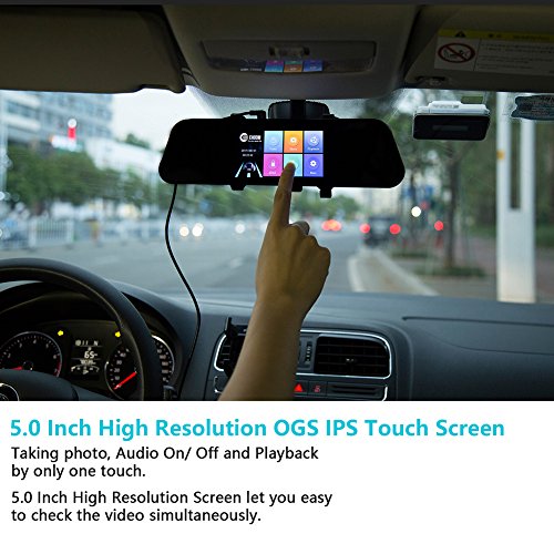 - 5.0 inch HD OGS IPS touch screen. You could easily take a photo, check the playbacks, or mute recording only with one touch.