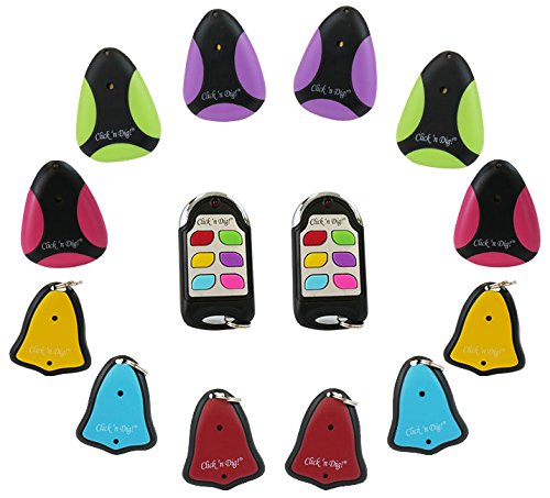 Studio : Click 'n Dig Publisher : Click 'n Dig Binding : Office Product Product Description This 2-pack comes with 2 complete sets of the Click 'N Dig! F6 Key Finder. Model F6 from Click N Dig is a newer model with 6 total brightly colored receivers. This Key, Wallet, Remote Finder is a convenient and high quality gadget that works! It beeps the right device every time. Simply press and hold down the color coded button on the radio transmitter until the corresponding colored receiver beeps to find the item up to 60 feet away and hidden under the pillows or across the walls. Radio frequency penetrates walls, cushions, leather etc. So the receivers beep from the other side of the walls, or when hidden deep in the couch or sofa pillows. Now never lose your keys, wallet, remote control, cell phone etc. Other technical details: Frequency: 433 MHz Sound Volume: 90-105 dB, Remote distance range: 60-80 feet. Shop with confidence! All orders are shipped within 24 hours. 0