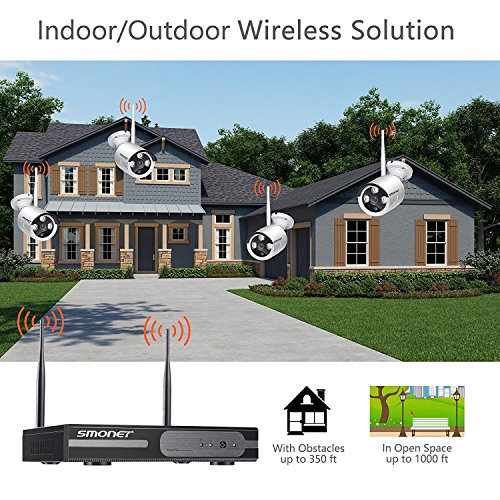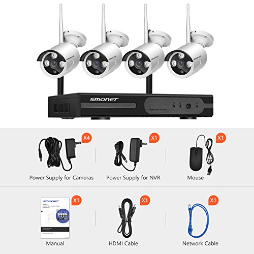 NVR Uberwachungskamera Set, Smonet 8 Kanal NVR mit 4 Stuck 960P Wasserfest HD IP Kamera, Drahtlos CCTV Uberwachungssystem, Bewegungsalarm, Nachtsicht, kostenlose Android/iOS App