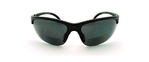 Product Description This pair of readers acts as a sleek and sporty pair of sunglasses but also has a built in magnified bifocal to help you read outdoors.These sunglass frames are lightweight and strong. Whether you are enjoying a long drive, a day at the beach or your favorite book under the beautiful sunshine, you will do so comfortably because of the light weight wrap around style of these sunglasses. A microfiber soft pouch that also acts as a cleaning cloth is included. Measurements = Size: 5 3/4" (146 mm) W x 1 3/4 (44 mm) "H 0