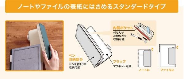 マグネットが内蔵されており、ノートやファイルの表紙にはさめるスタンダードなタイプです。