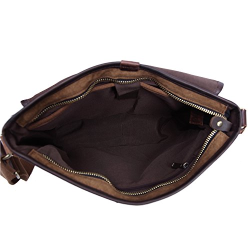 -. Feature : 100% brand new and with Plambag label, which own and only sold by Plambag / Made by high density canvas and genuine leather, high quality antique brass hardware, well sewn craftsmanship, resistant to wear and tear / Top zipper closure, flapover with push lock closure which is great for quick-access items / Interior with 1 large main compartment for textbook, documents, wallet, ect; 1 laptop pocket can store 11 inch Macbook air or iPad; 1 zipped pocket can hold other small stuffs. Exterior with 1 front pocket, which inside with 2 open pocket and 2 pen loops. Backside with 1 zipped pockets can store your phone safely / With the adjustable straps, this bag can be used as crossbody bag or handbag, which is perfect for school, college, office, travel, outdoor and all other occasions