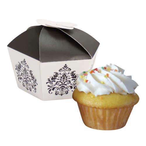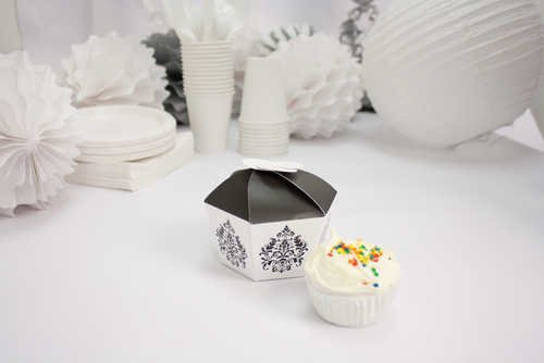 4-Count Presentation Station Individual Favor Boxes, Black & White Damask