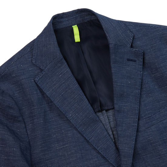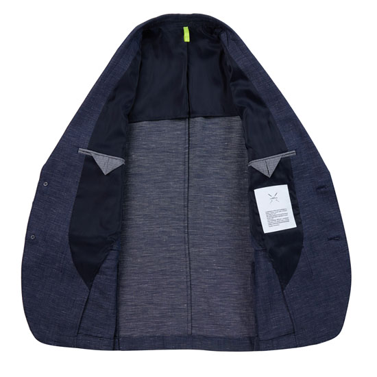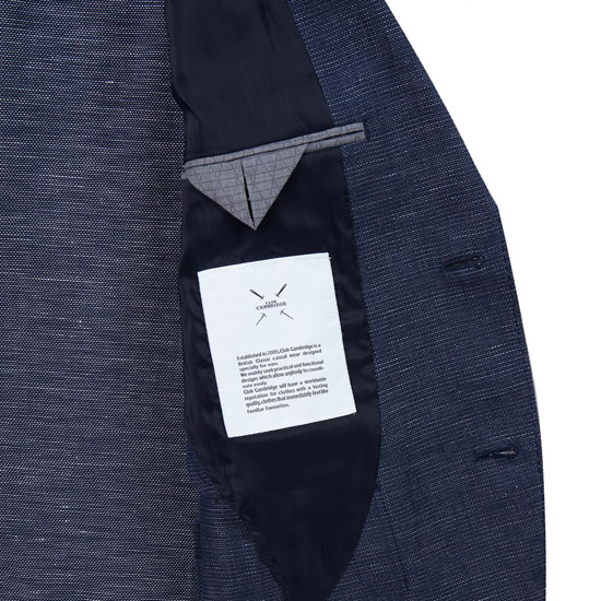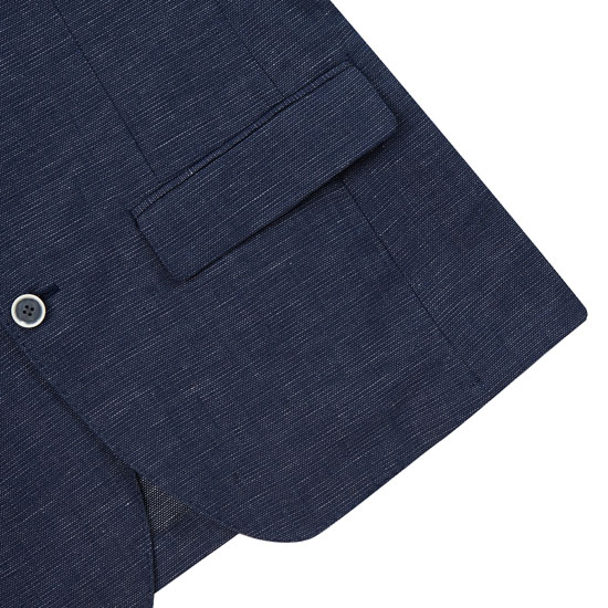 - 네이비&화이트 컬러가 어우러진 패턴으로 청량한 느낌의 남성 자켓.