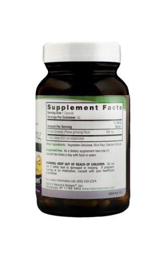 Nature's Answer Korean Ginseng Root Vegetarian Capsules, 50-Count
