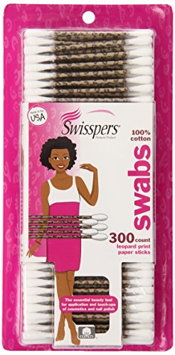 Swisspers leopard stick cotton swabs are double-tipped with 100% cotton they are the perfect tool for touch-ups of nail polish, lipstick, eyeliner and other cosmetics the strong paper stick offers greater control and precision when applying or correcting cosmetics and nail polish