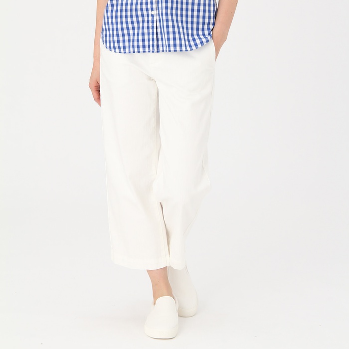 원본상품명: オガニックコットンストレッチデニムワイドクロップドパンツ 婦人XL白コンビニ受取可