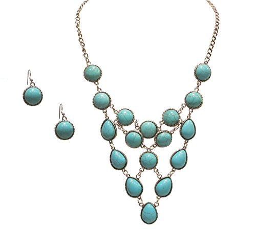 The attention to detail in this simulated turquoise bib jewelry set is outstanding. Wear it on the weekends or for a night out the beauty of this necklace is its versatility. This matching set makes a great gift for the fashionista in your life and will be delivered to you in a box appropriate for gift givingFeature