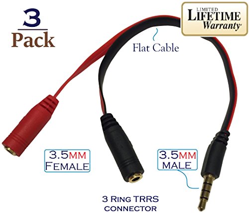 Josi Minea x 3 Pcs PC Headset to 3.5mm Smartphone Adapter: Convert PC Headset to 3.5mm TRRS Plug to use with Apple iPhone 6/6S/6+/5S iPad Samsung Galaxy S6/S5 & most Smartphones & Tablets [ 3 Pack ]