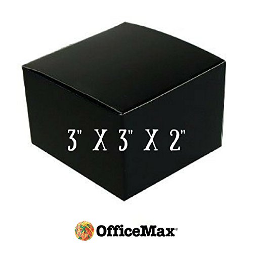 Studio : Office Max Publisher : Office Max Binding : Health and Beauty Product Description Pack of 100 3" x 3" x 3" gift boxes with black gloss exteriors and white interiors. Gift boxes are made from 100% recycled board. Made in the USA. Pair with lace, baker's twine, raffia, ribbon, and tags. Whether you are creating favors for a wedding or looking for the perfect package for candy and small gifts these glossy black boxes add rustic elegance and classic style to any occasion. The one-piece fold and tuck construction makes assembly a quick and hassle free in a matter of seconds. 0