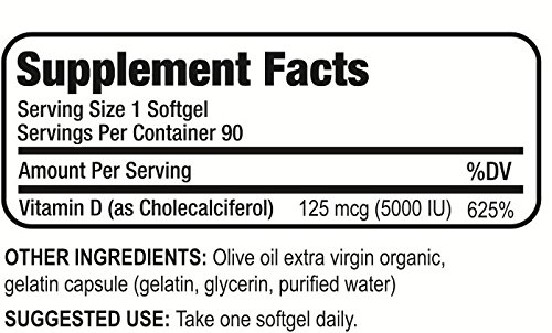 -. Feature : FREE Ebook Download - Vitamin D - Protect Yourself Head-To-Toe / Supports cardiovascular function, immune function, bones, and teeth! / 5000 IU cholecalciferol per softgel, suspended in organic Extra Virgin Olive Oil (not soy) / VItamin D promotes healthy immune function as an antioxidant