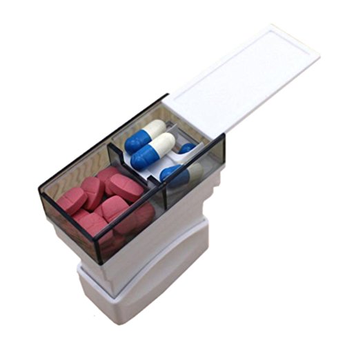 Package Including 1 * Blade Hidden Pill Splitter Spring Pushed Pill Cutter Box Holder for Storing Pills 0