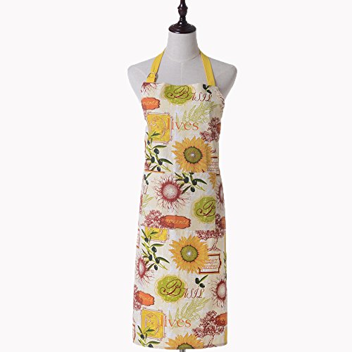 Glanzhaus Yellow Sunflower Pattern Cotton Kitchen Apron for Women, Chef Cooking or Baking Apron with Two Large Front Pockets