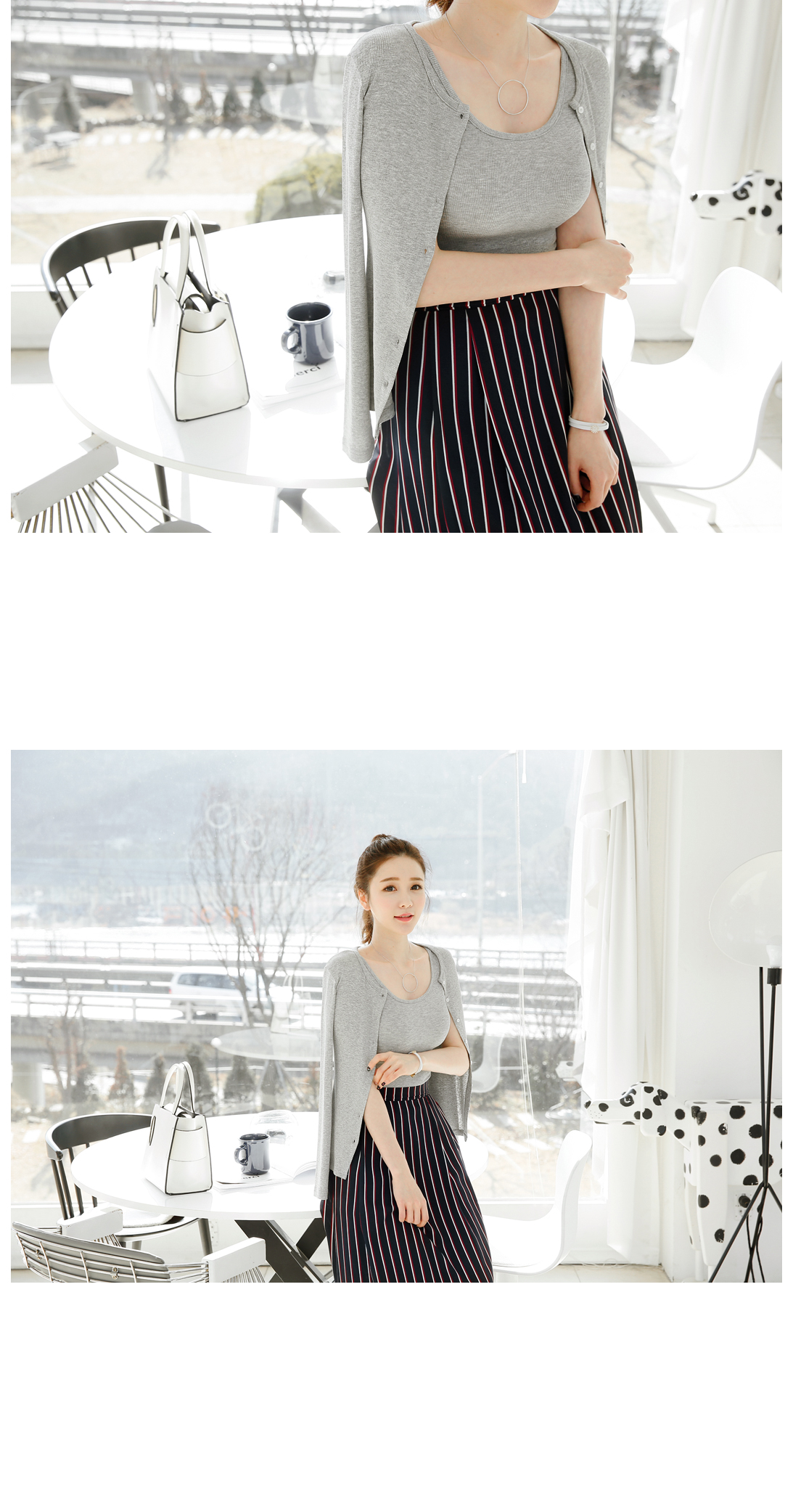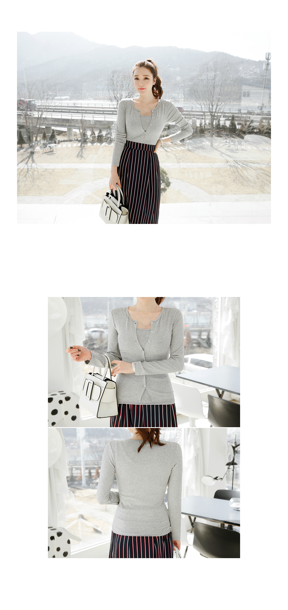 어디든 간편하게~ 데일리가디건! 여리여리한 무드로 즐기기 좋아요^^ 소트프한 소재감으로 입었을 때 착용감이 편안한 아이템이구요 타이트한 핏감이 날씬한 바디라인을 보여주는 가디건이에요! 라운드넥 디자인으로 다양한 룩에 안정감있게 코디되는 아이템이구요 심플한 디자인으로 어디에나 매치하기 좋아 소장가치가 높아요~ 컬러감까지 베이직해 한층 더 데일리한 기본 가디건이랍니다^^*