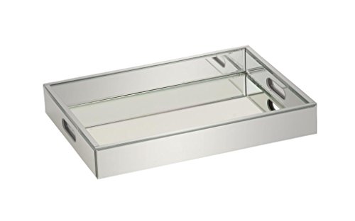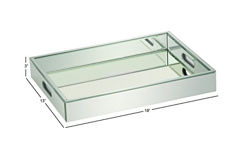 Deco 79 Wood Mirror Tray, 18 by 3-Inch, Silver