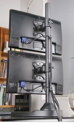 -. Binding : Personal Computers -. Brand : EasyMountLCD -. Color : Black -. EAN : 0726670276452 -. Feature : Holds Widescreen displays up to 27" / VESA 75 x 75 mm or 100 ×100 mm Compatible / Full Motion Mount - Easily Tilts, Swivels and Rotates / Height Adjustable / With A Heavy-Weighted Metal Base. Also Can Be Bolted, Easy To Install -. Label : EasyMountLCD -. Manufacturer : EasyMountLCD -. Model : 002-0014 -. MPN : 002-0014 -. PackageQuantity : 1 -. PartNumber : 002-0014 -. ProductGroup : PC Accessory -. ProductTypeName : SYSTEM_CABINET -. Publisher : EasyMountLCD -. Studio : EasyMountLCD -. Title : EZM Vertical Dual LCD Monitor Mount Stand Freestanding up to 27" (002-0014) -. UPC : 726670276452
