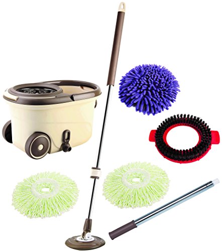 - MOPPING MADE EASY:You can now make mopping fun and easy with this brand new state-of-the-art spin mop set! This incrediblerotating mop will help you mop your whole house in no time and with minimum effort! The fast spinning mop head will give you a squeaky clean and shinyfloor in half the time it usually takes you tofinish it and with nohassle!
