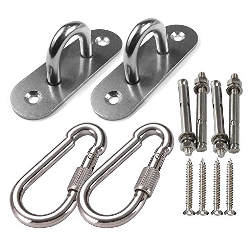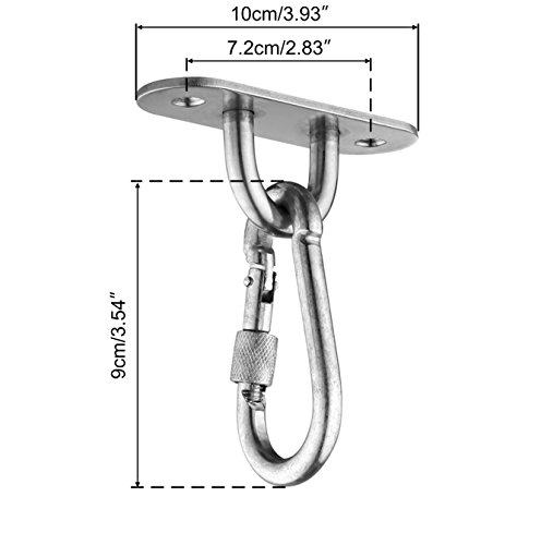 Mellewell 2 Pack Suspension Ceiling Hooks Hammock Swing Hook 4-Inch Length and Carabiners for Hammock Stand, Yoga Hammocks, Swing, Chair, Indoor, Outdoor, Stainless Steel, 8019CH-2