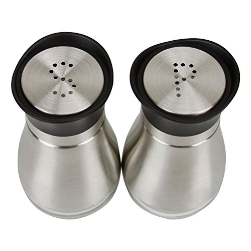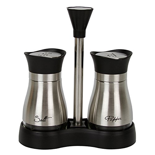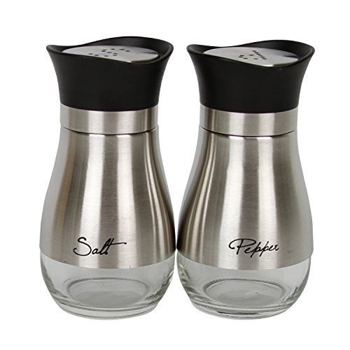 Evelyne GMT-10051 Stainless Steel Salt and Pepper Shakers Set with Tray and Letter Initial Glass Bottom Casing