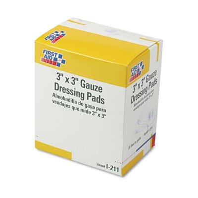 -. Feature : P.R.Ice For: Each Package Type: Box Standards: ANSI/ISEA Z308.1-2015 Item: Gauze Pad Material: Cotton Color: White Sterile/Non-Sterile: Sterile Waterproof: No Width: 3" Length: 3" Includes: (20) Gauze Pads Country of Origin (subject to change): United States