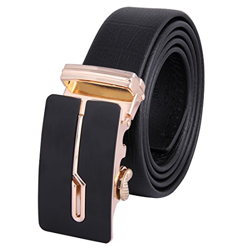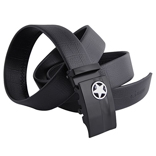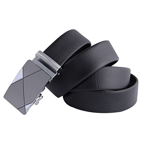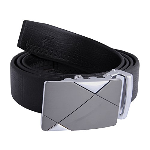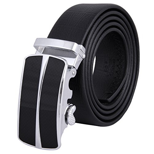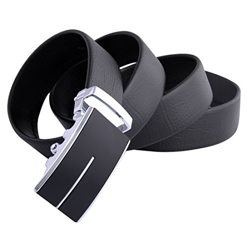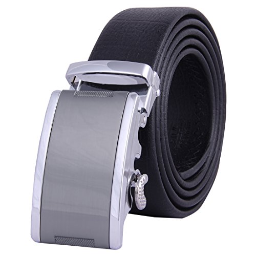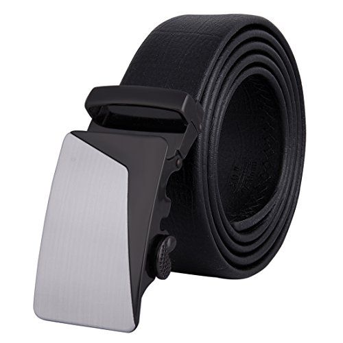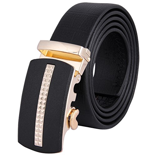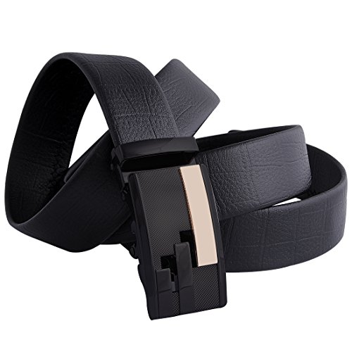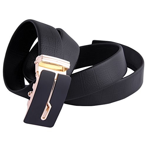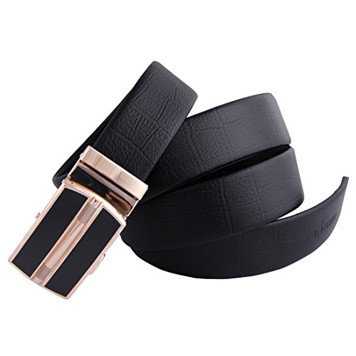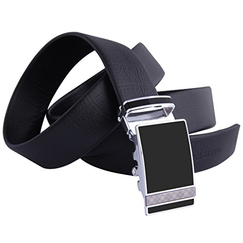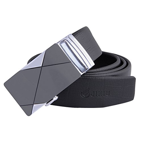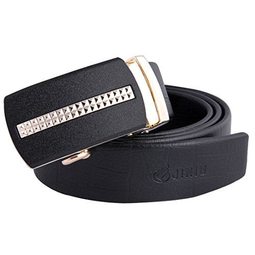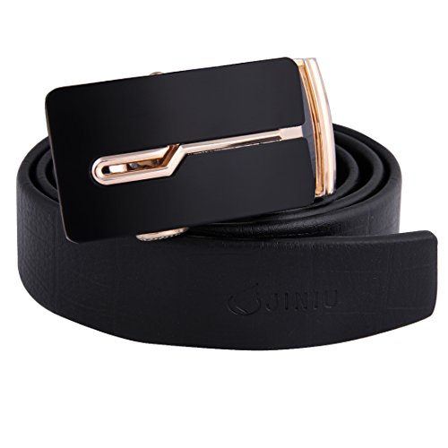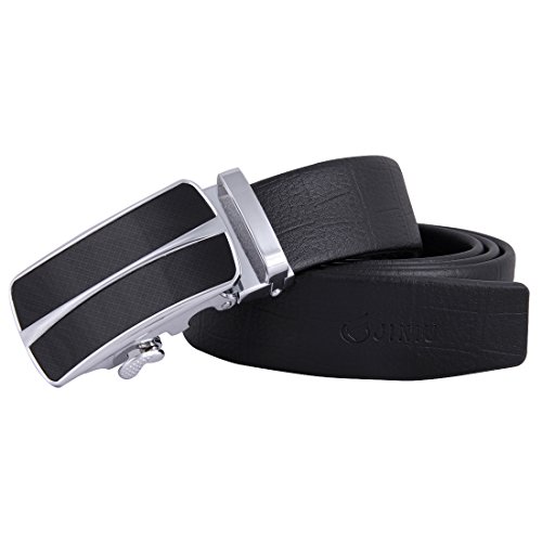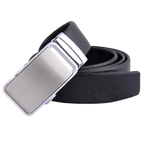 | JINIU Men's Leather Belt Automatic Buckle 35mm Ratchet Dress Black Belts Boxed |