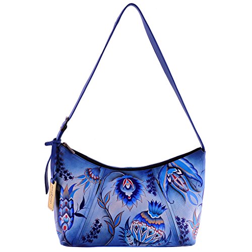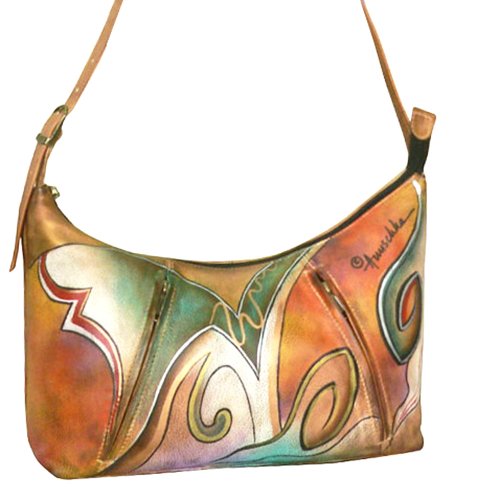 In the early '80s when Swapan Basu chanced upon the opportunity to make hand-painted accessories; he was quick to seek help from his best friend and wife, Roma. In 1984, Roma started designing hand-painted bags while developing the process and refining the method of painting over the years. Today it is a closely guarded family secret. Anuschka bags are a feast for the eyes. The colors are a very powerful element in these designs. The wide range of abstracts, imaginary and natural scenes, depicted in muted colors of all shades and hues, transforms each handbag into an object of timeless art.Feature
