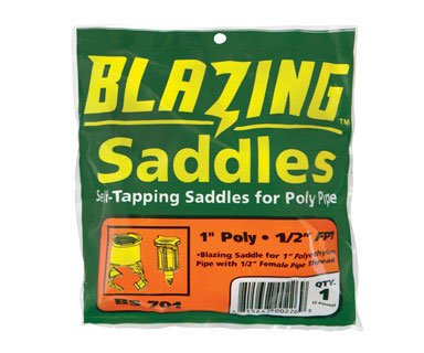 -. Feature : BLAZING PRODUCTS IRRIGATION SELF-TAPPING SADDLE / 1 poly x 1/2 FIP / No tools, clamps or glue are needed / Just push down to latch the saddle to the pipe / Twist the spike into the saddle and you are ready to put in your sP.R.Inkler head