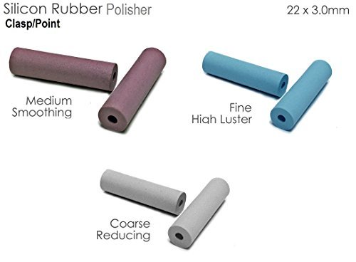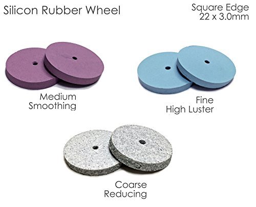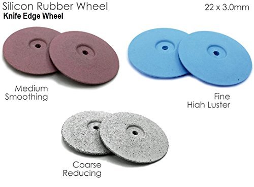 -. Feature : Used for pre-polishing porcelain and metals / Comes in different softness: Coarse, Medium and Fine / Square Edge Wheel - 22x3mm; Knife Edge Wheel - 22mm; Clasp / Point - 22x6.4mm / Coarse - White, Reducing; Medium - Pink, Smoothing; Fine - Blue, High Luster / Use for pre-polishing porcelain and metals