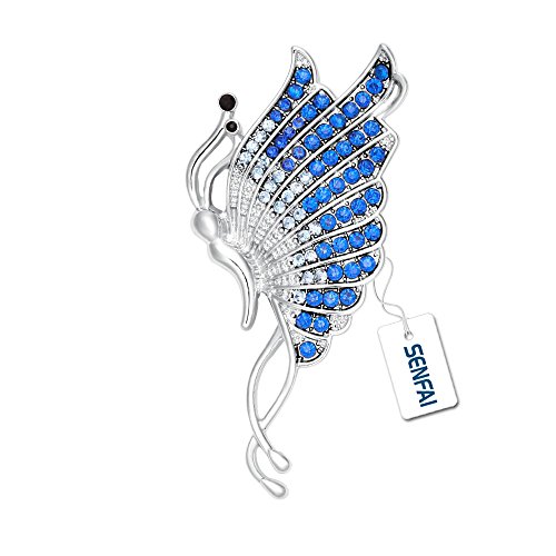 -. Title : SENFAI Elegant Blue Crystal Butterfly Magnet Brooch Perfect Gift