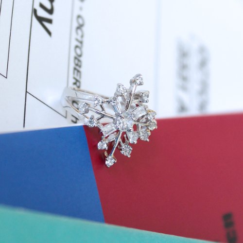 - Title : Sterling Silver & Diamond Imitation CZ Cubic Zirconia Snowflake Ring