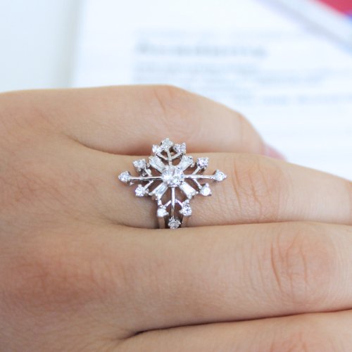 - Feature : This ring is made of solid sterling silver with anti-tarnish rhodium plating and is set with small diamond-simulated cubic zirconia stones, which shine and sparkle beautifully just like real diamonds. / Snowflake measures 22 x 18 mm. / Comes with a gift box and free shipping!