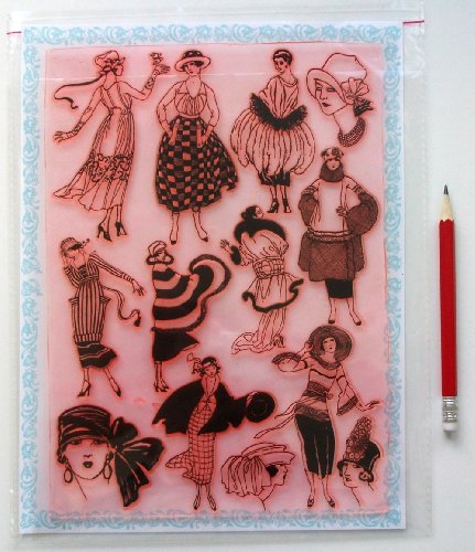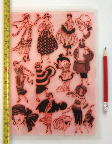 -. Title : Vintage Fashion Art Modern (7"x10") Clear Stamps Large Sheet / Fashion Girls, Jazz Era