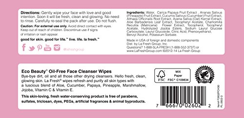 La Fresh Eco-Beauty Facial Cleansing Wipes – 99.25% Natural, Sensitive Skin Face Towelettes in Travel-Friendly Resealable Pouch (Total 90 Count, 3 Pack)