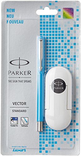 -. Title : Parker Vector Standard Fountain Pen Chrome Trim Fine Nib Chrome (Blue) with 3 Free Ink Cartridges