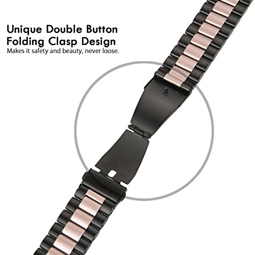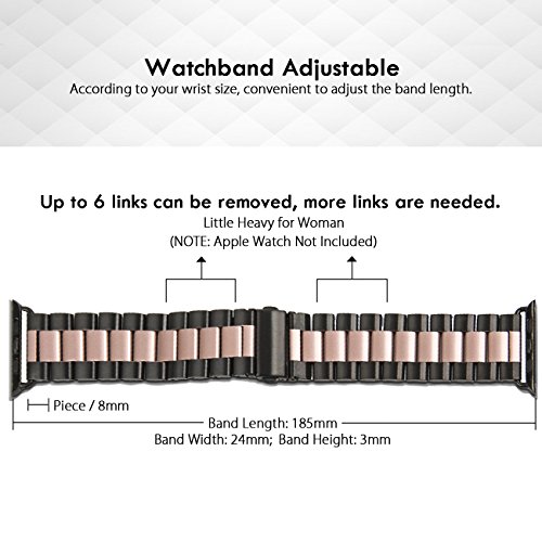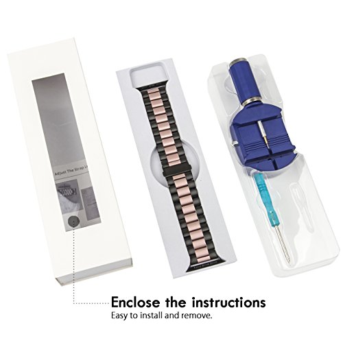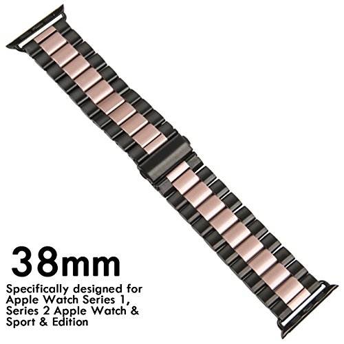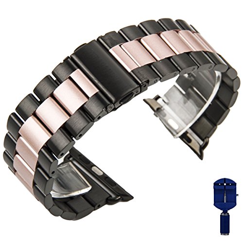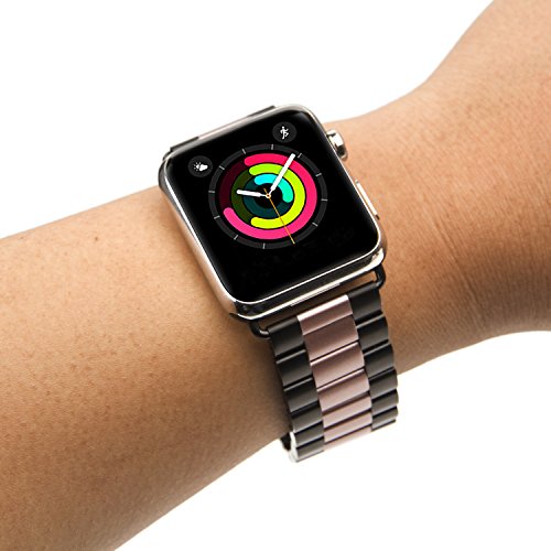 Apple Watch Band,CASEOWL Stainless Steel Metal Replacement Strap Bracelet with Butterfly Clasp + Remover Adjuster iWatch band Series 3 Series 2 Series 1-38mm (Black & Rose Gold)