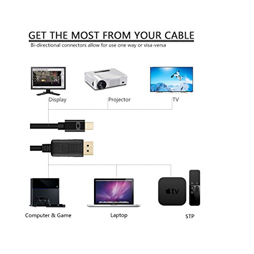 Simple designs and easy to use , DisplayPort 1.2 cable, directly connecting a Mini DisplayPort (compatible with Thunderbolt™ 2) to a monitor or projector with DisplayPort