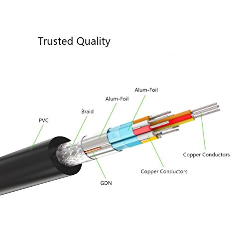 Gold-plated connectors, bare copper conductors, and foil-and-braid shielding for strength and reliable connectivity and signal transmission increasibility