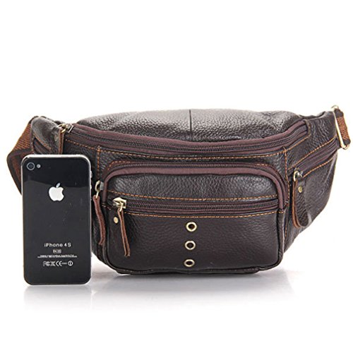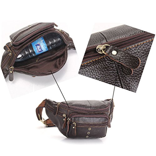 -. Feature : Genuine Cow Leather / Product Dimensions: 5.1*6.7*3(IN) / Structure: 1* main pocket+ 2* front zipper pocket+1 small inside pocket+1* rear zipper pocket+2* small zipper pocket on both sides / Adjust waist strap from 33¡± to 45¡± with metal buckle snap / Large enough to hold all your Stuff, such as mobile phone, keys, money, cards and so nn, best choice for travel or other outdoor activities